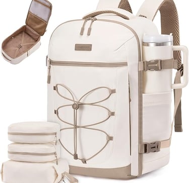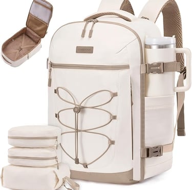 We are OBSESSED with this travel backpack. The main compartment unzips fully so you can pack it like a suitcase. It's 40L of well thought out space that helps you maximize your PERSONAL item. There are 7 zippered pouches in addition to the main packing compartment. The little bag is extremely well made and packs so much punch! Save money on luggage fees with this sleek, affordable beauty. It even comes with packing cubes! Personal item perfection and the perfect gift for any travel lover.